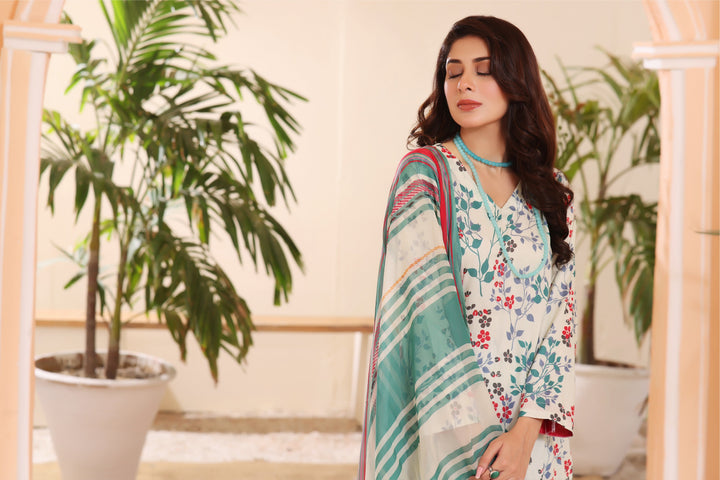 The article includes:Unstitched 3PCDigital Printed Shirt 3 yardsDigital Printed Chiffon Dupatta Digital Printed Trouser 2.5 yards