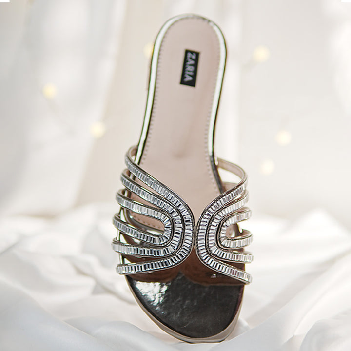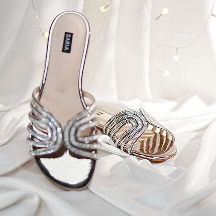 Radiant and refined, Lucent is your go-to slip-on for effortless glamour. With a mirrored rose-gold base and hand-set crystal embellishments, this design catches the light — and attention — at every angle. Designed for elegance, made to shine.