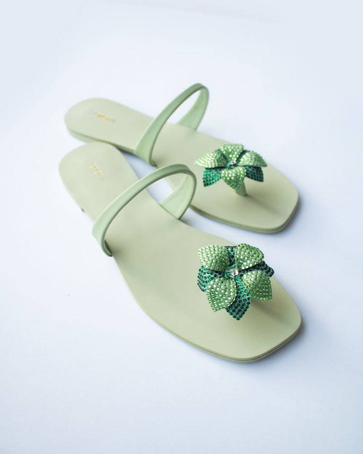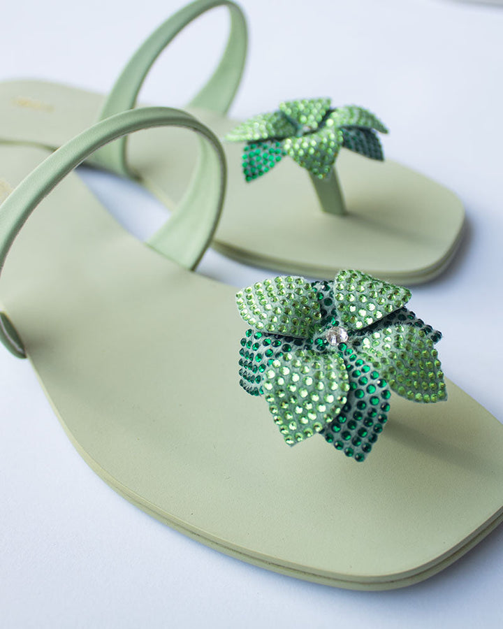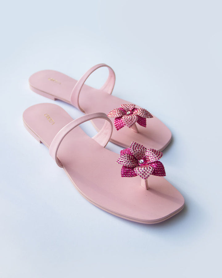 Details: Adorned with a sparkling crystal floral toe ring, on pastel colored sheet base.