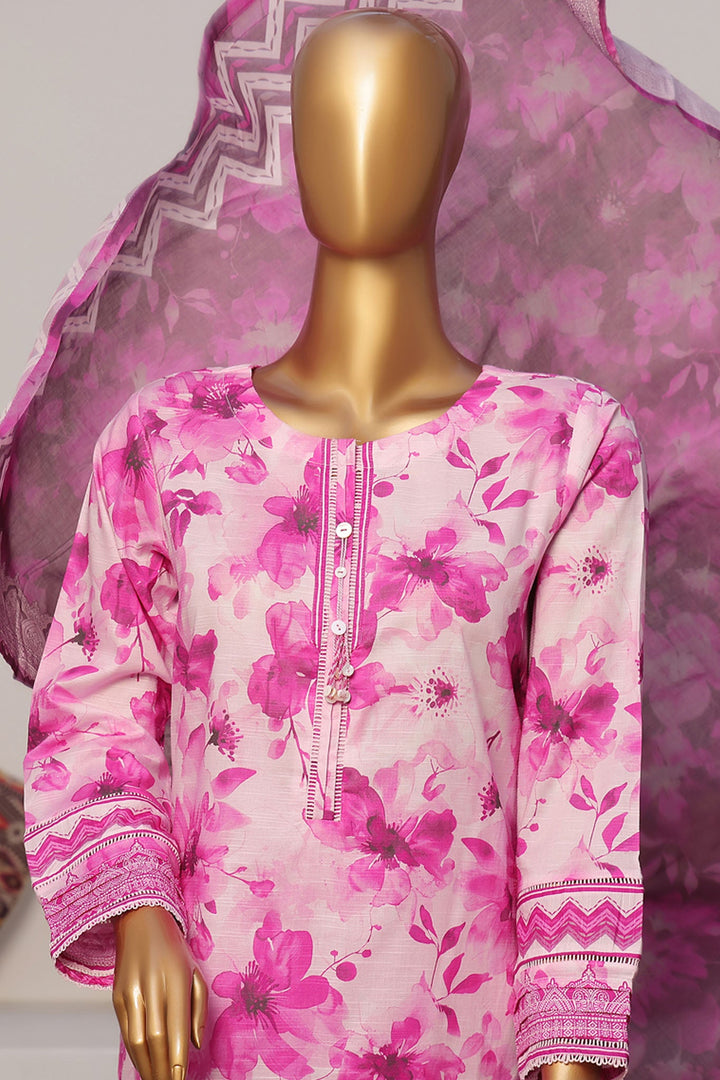 Printkari By HZ Stitched 3 Piece Emb Slub Cambric Collection'2024-CPK-809