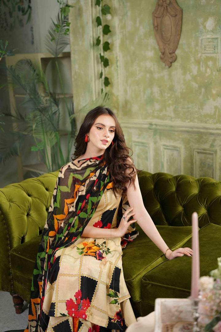 Experience ExquisitelyThis dress is for a new go this summer.The article includes:Unstitched 3PCDigital Printed Shirt (3 yards)Digital Printed Trouser (2.5 yards)Digital Printed Chiffon Dupatta (2.5 yards)Fabric Type: LawnNote: To get the same stitching style, please purchase our two dresses.Disclaimer: Actual product color may vary slightly from the image.