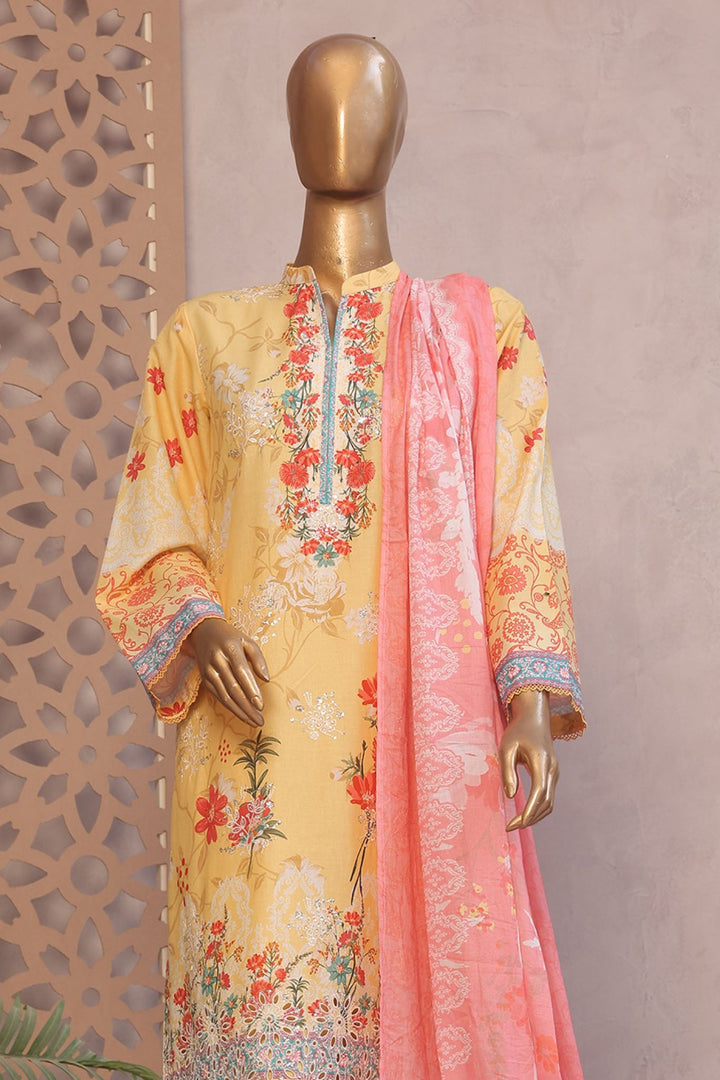 Ronaq E Eid By Bin Saeed Stitched 3 Piece Exc Emb Lawn Collection'2025-SM-1884-Yellow