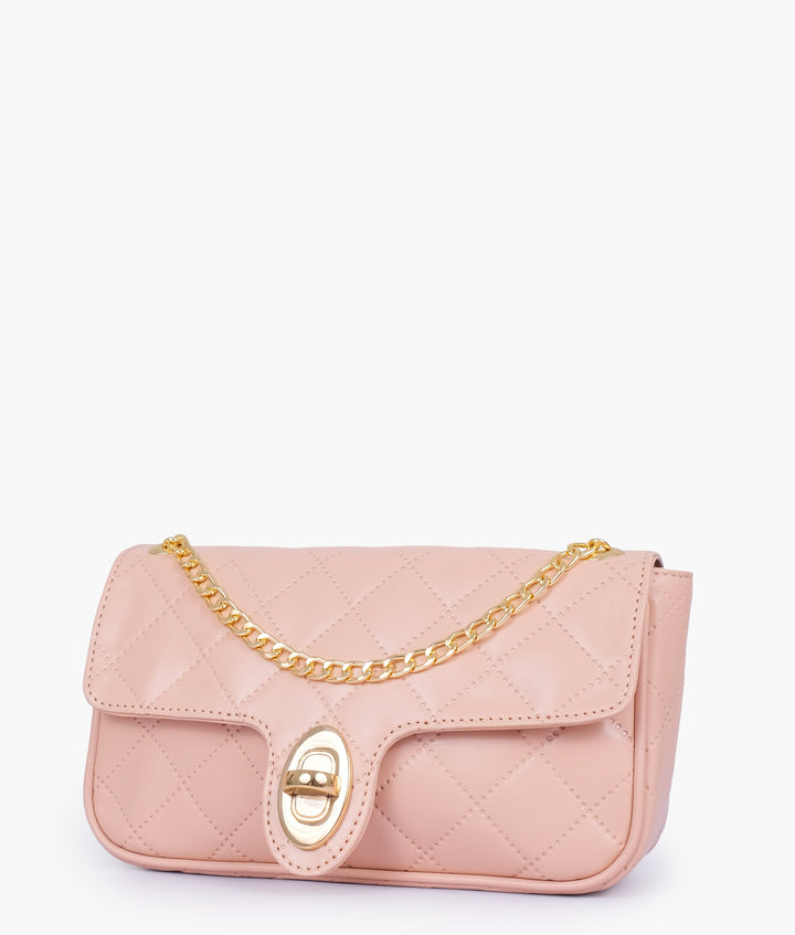 RTW Creation - Baby pink quilted small shoulder bag with chain