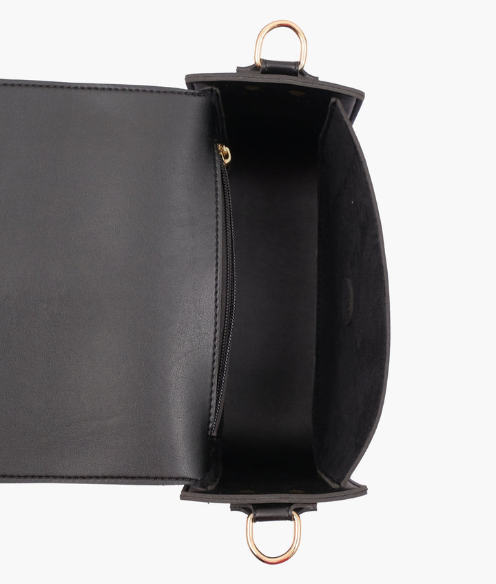 - One main compartment under the flap secured by magnetic button.