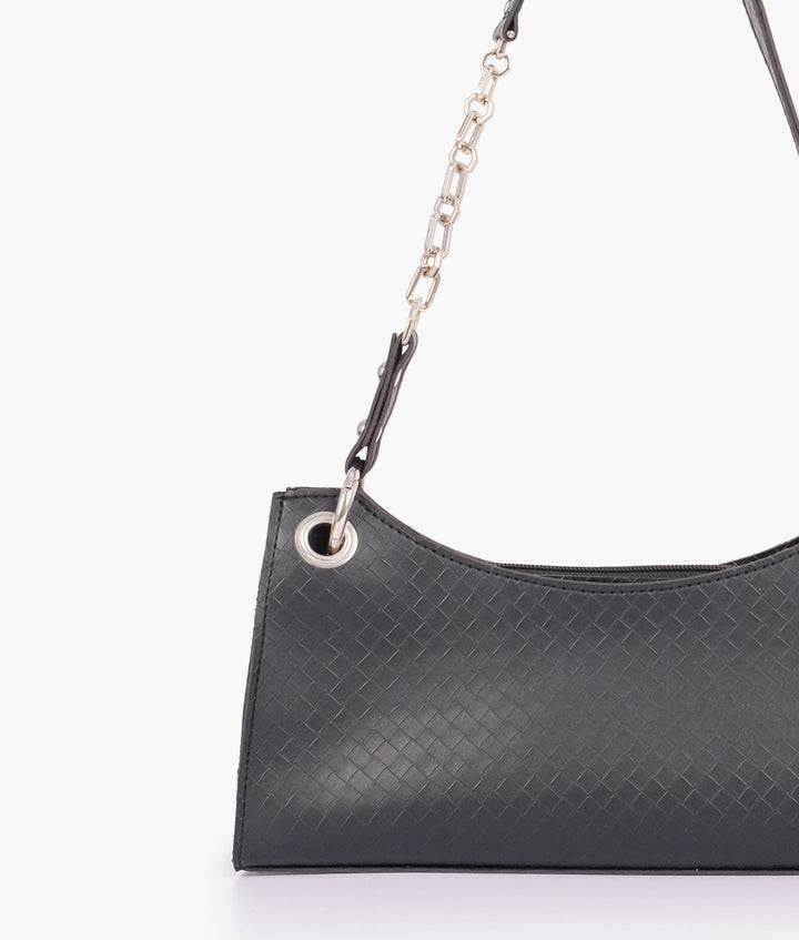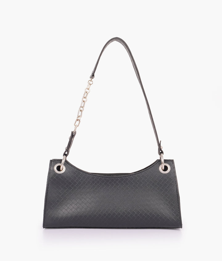 RTW Creation - Black weaved elongated chain handle purse