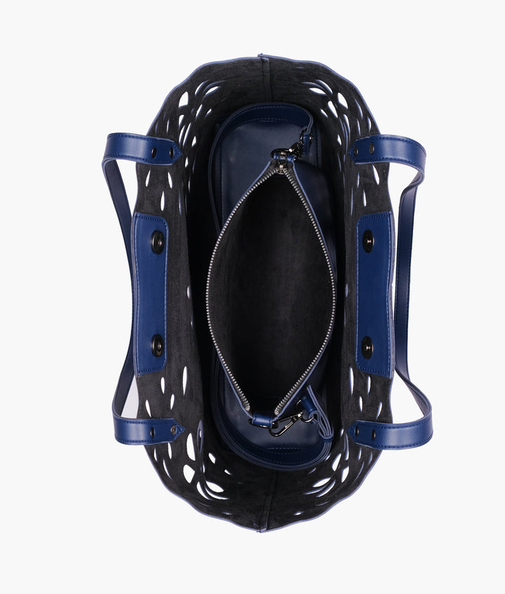 - Zippered cross-body pouch inside.