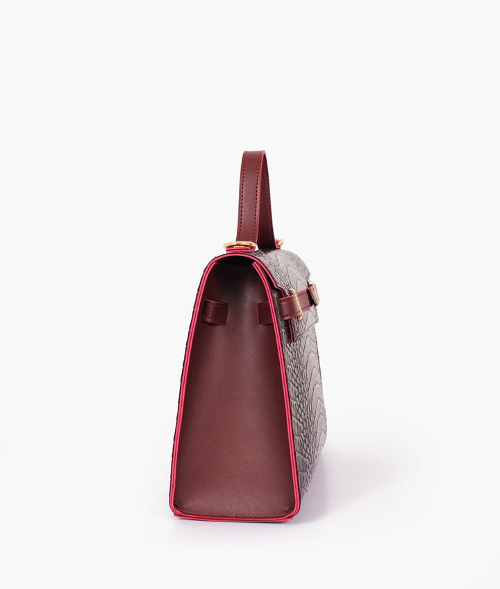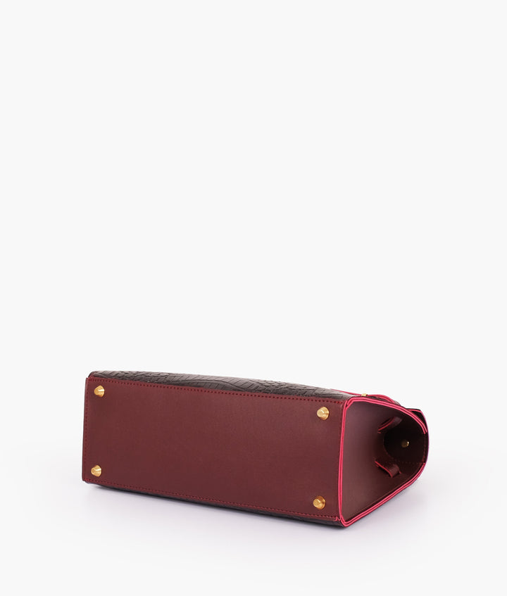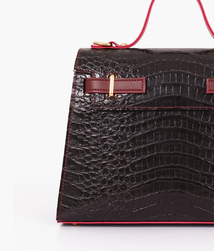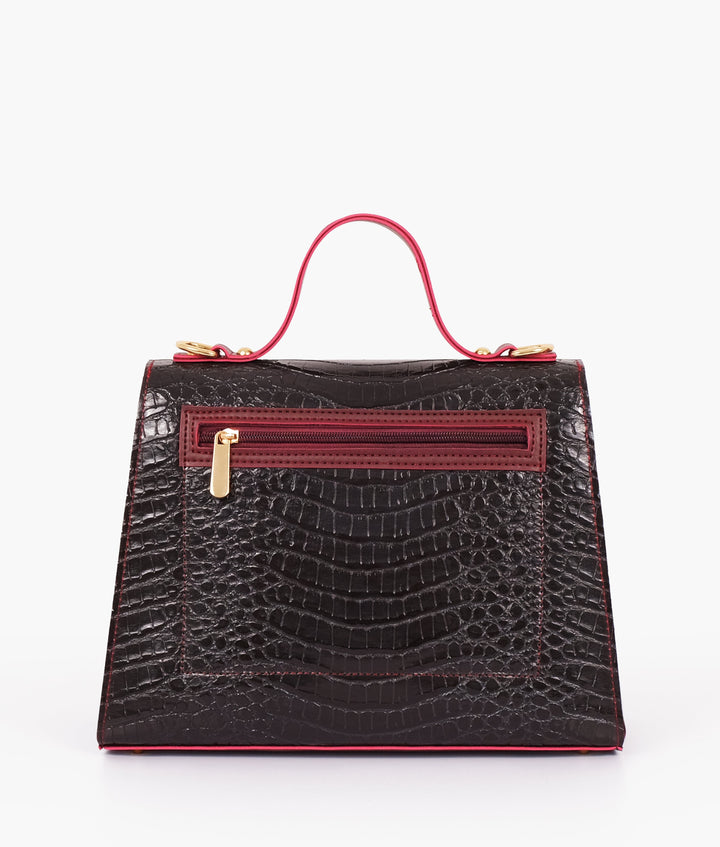 RTW Creation - Burgundy and black crocodile cross-body bag with top-handle