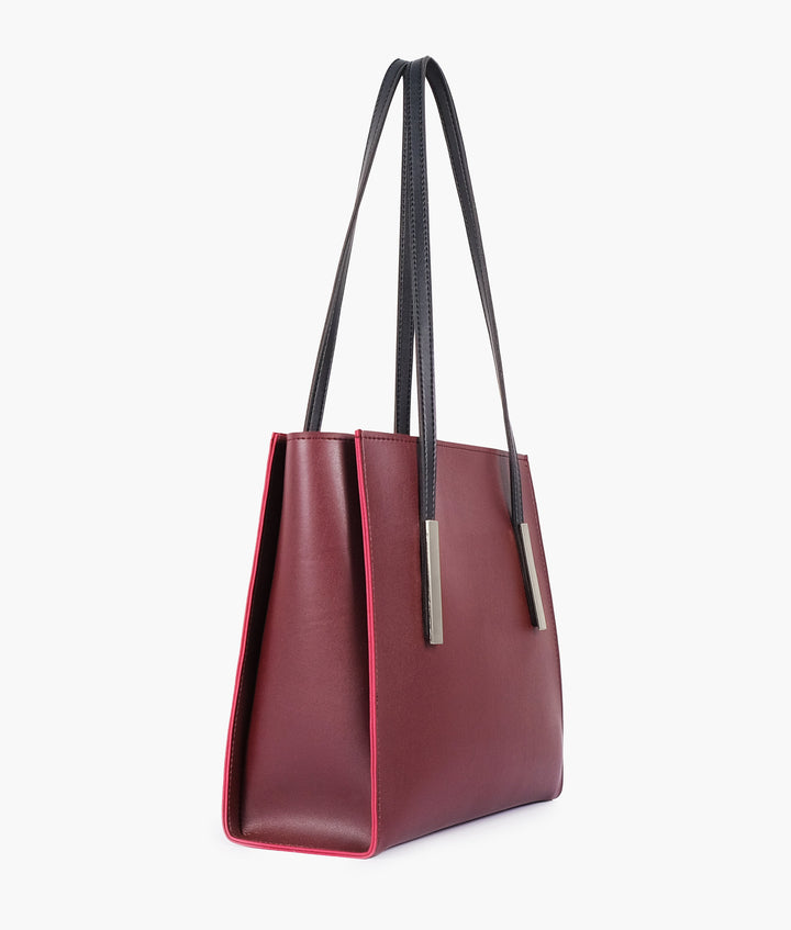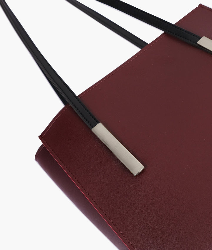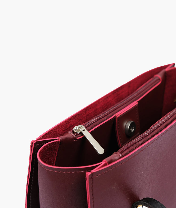 RTW Creation - Burgundy and black zipper shoulder bag with long handle