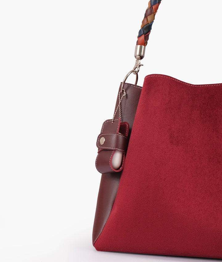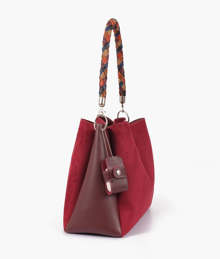 RTW Creation - Burgundy suede handbag with braided handle