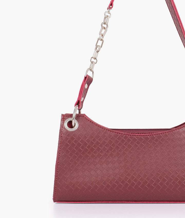 RTW Creation - Burgundy weaved elongated chain handle purse