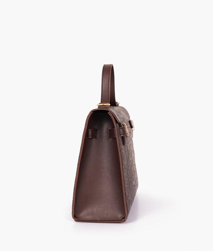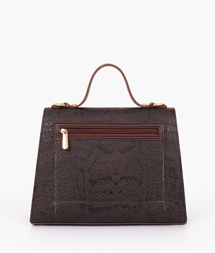 RTW Creation - Dark brown crocodile cross-body bag with top-handle
