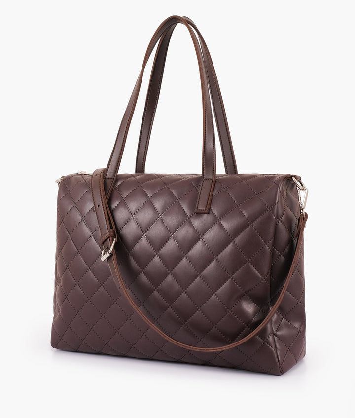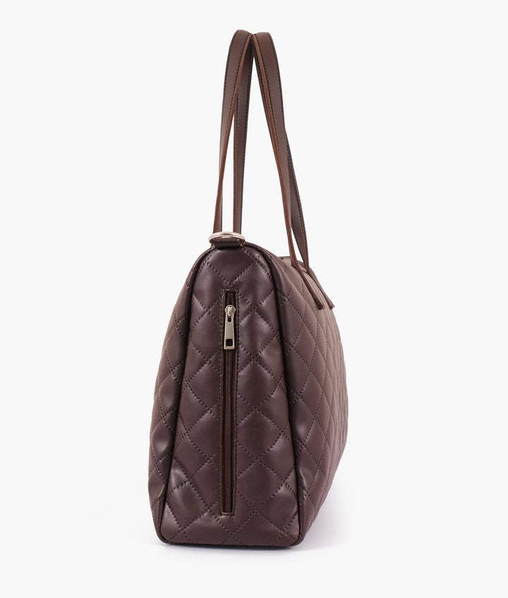 RTW Creation - Dark brown quilted carryall tote bag