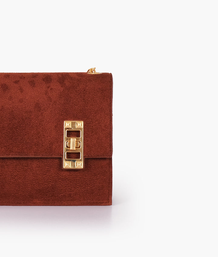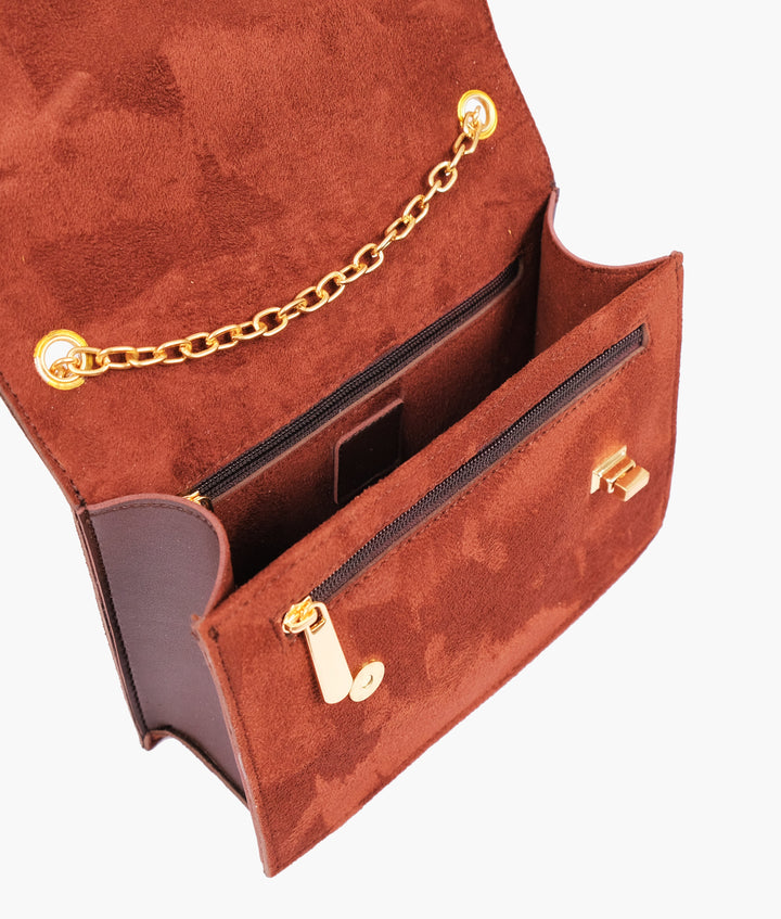RTW Creation - Dark brown suede chain shoulder bag with twist lock