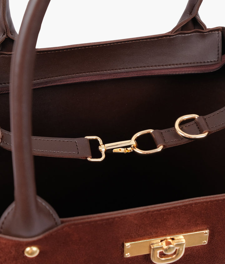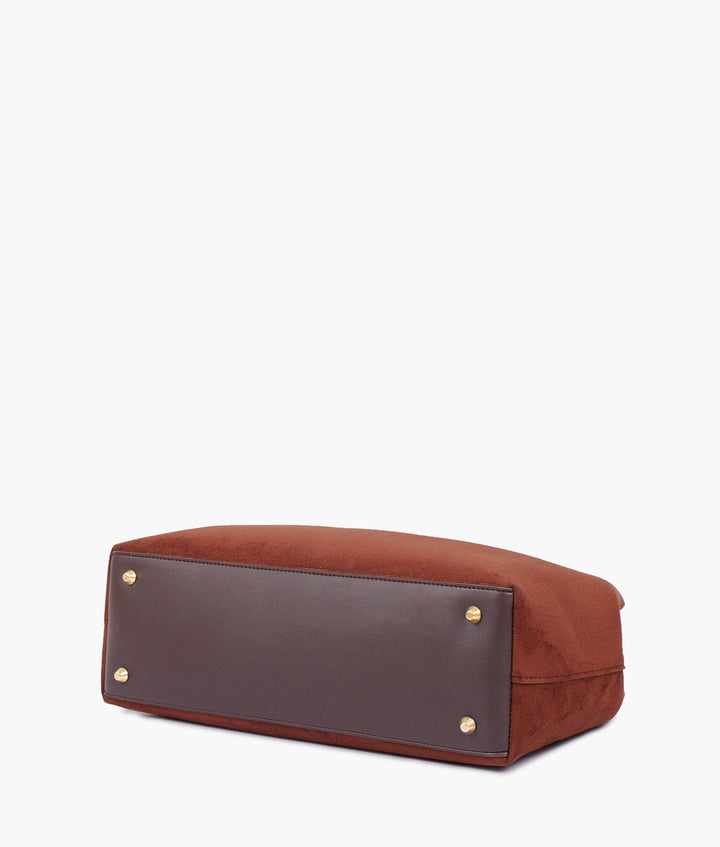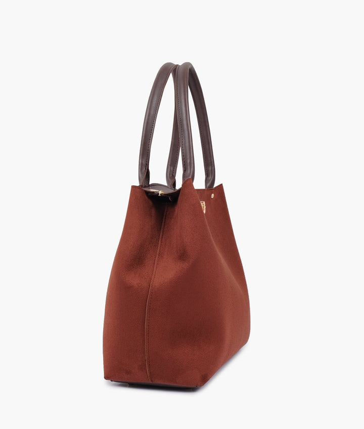 RTW Creation - Dark brown suede zipper tote bag