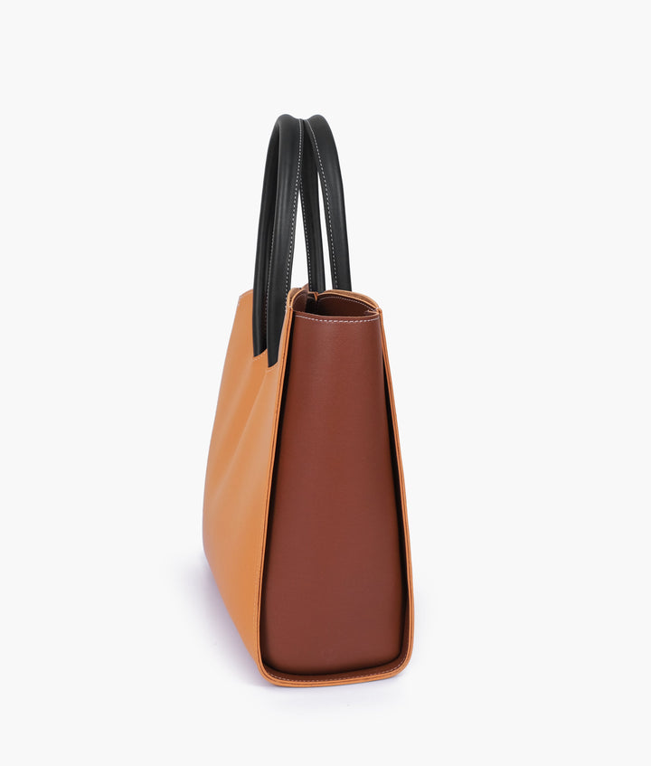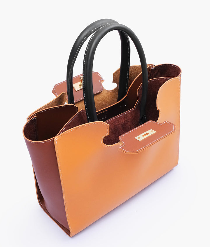 RTW Creation - Mustard and brown tote bag with multiple compartments