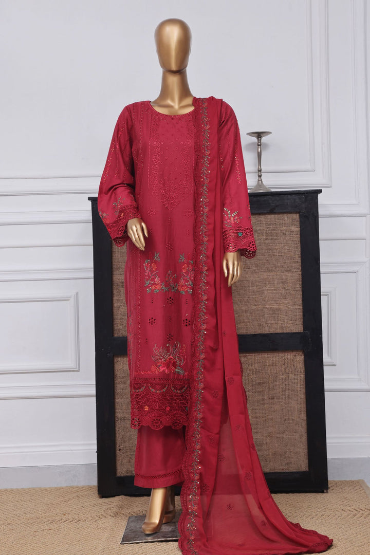Sada Bahar Stitched 3 Piece Luxury Emb Spring Collection-LEL-MK-26-Red