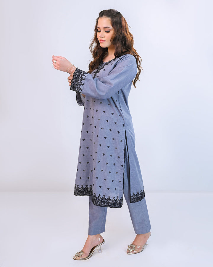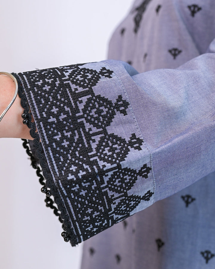 Classic grey and black combination with intricate cross-stitch embroidery—perfect for any day or night event!