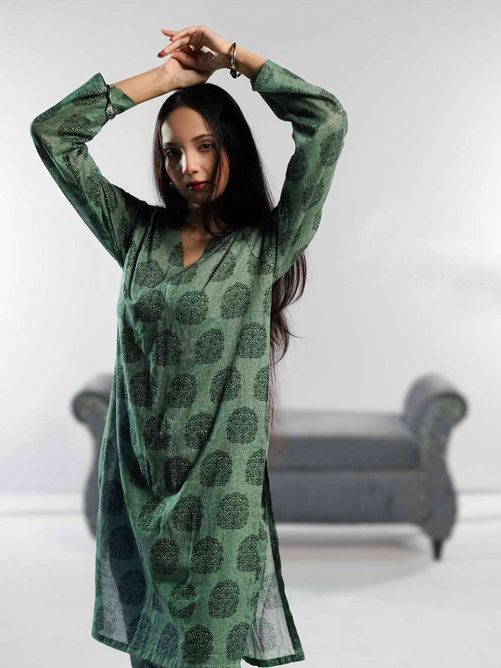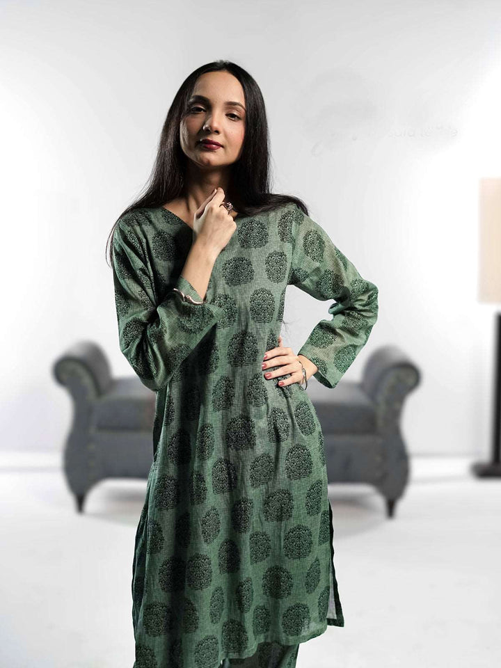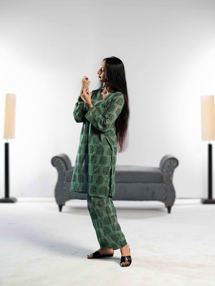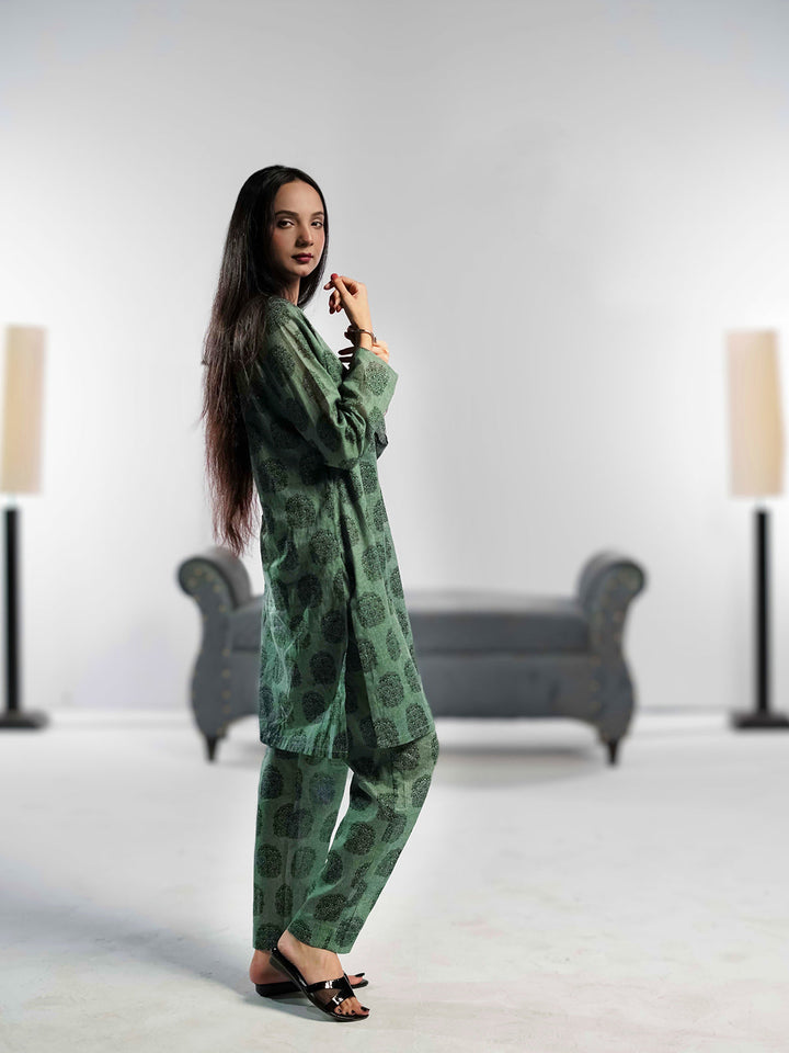 Ahlam Soft Cambric Stitched-Stone pine Co-ord set Collection'2024