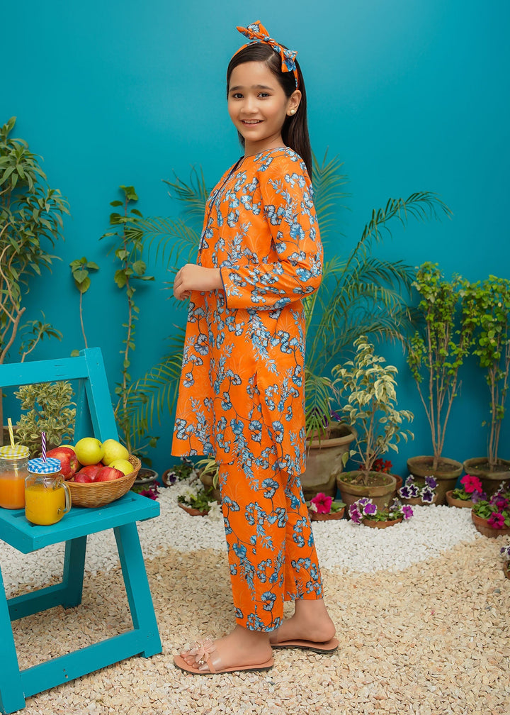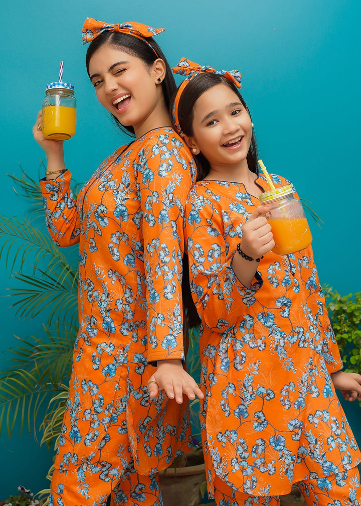 - Detailing: The bold orange base with delicate blue floral patterns creates a lively and refreshing look. Made with breathable lawn fabric, this set ensures all-day comfort, while the contrast piping and button details add a stylish finish.?