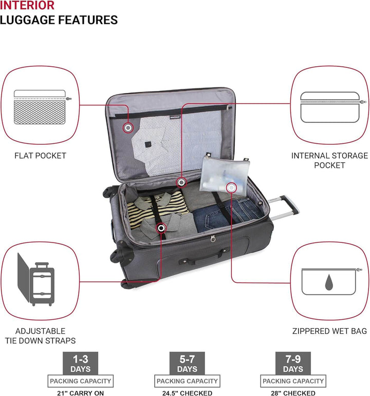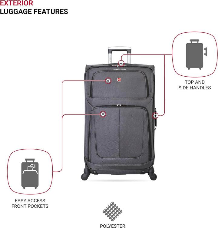 Bag X Swissgear Sion Softside Expandable Luggage, Dark Grey, 3-Piece Set (21/25/29)