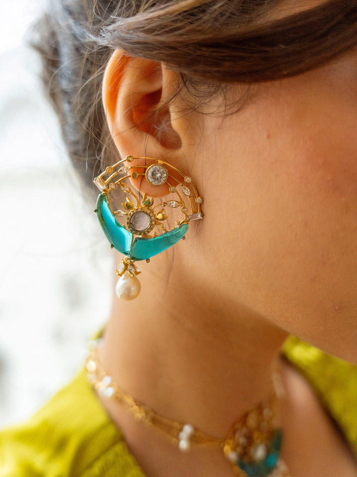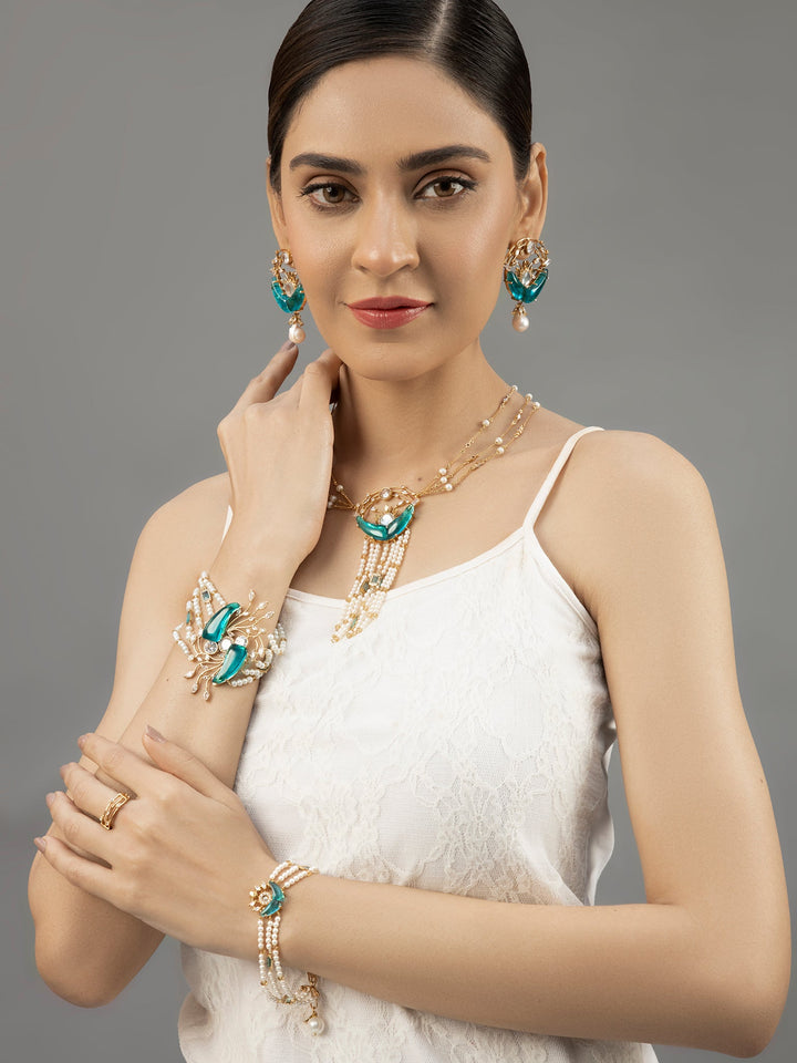 Captivate your inner magic with the teal hues in the handcrafted symphony of Tealing Glit - where elegance meets opulence. Complete your look with the matching necklace and leave a charm wherever you go!