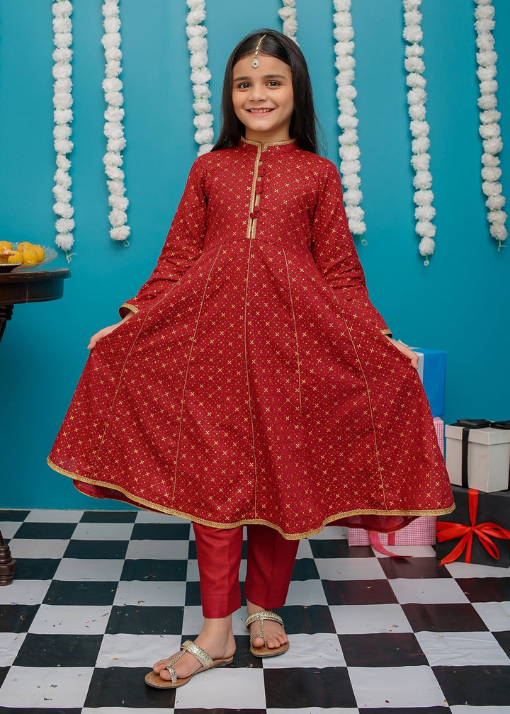 Elevate your toddler's festive wardrobe with our charming 3 piece?cotton frock set, Perfect for Eid celebrations.