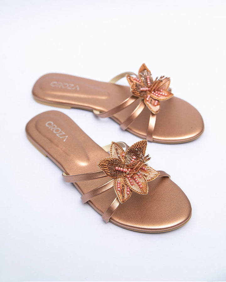 TULIP Floral Handwork Flats_rosegold