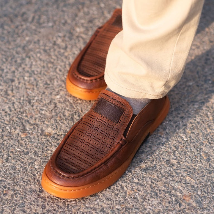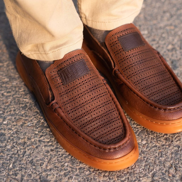 Turkish-Made Dotted-Design Brown Leather Shoe Light Brown in Color