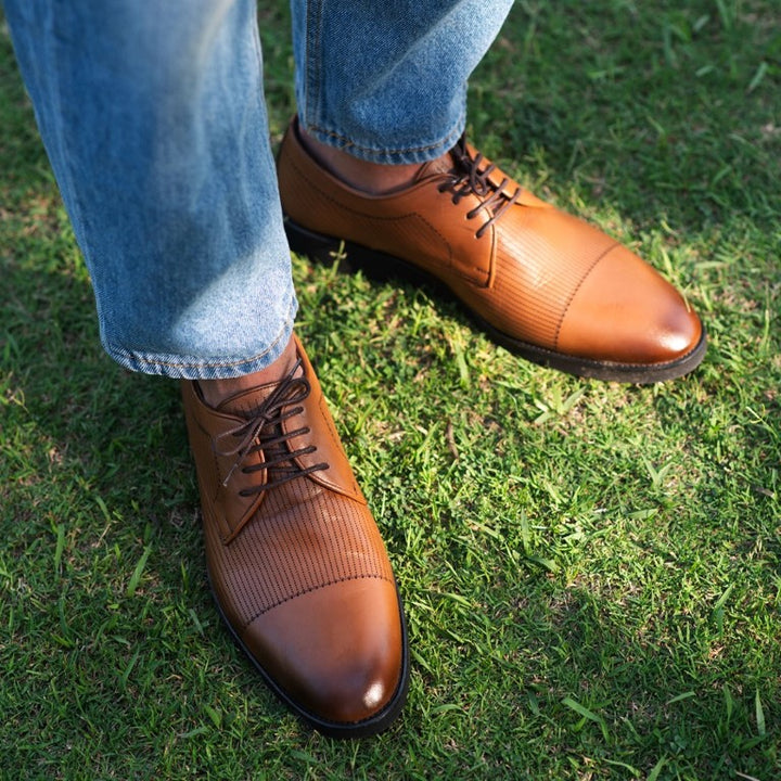 Turkiye-origin Lace-up Formal Leather Shoes in Tan-brown