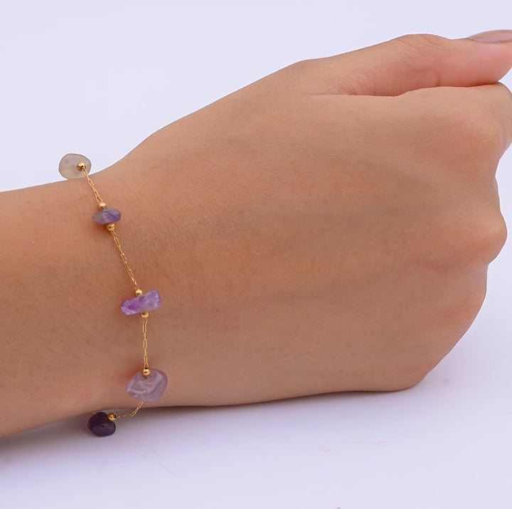 A delicate balance of raw and refined — this bracelet/necklace features hand-selected semi-precious stones paired with a sleek stainless steel chain. Water-resistant and tarnish-free, it’s designed for everyday wear — whether you're out in the sun, caught in the rain, or taking a dip. Each stone tells its own story, untouched and naturally beautiful — just like you.