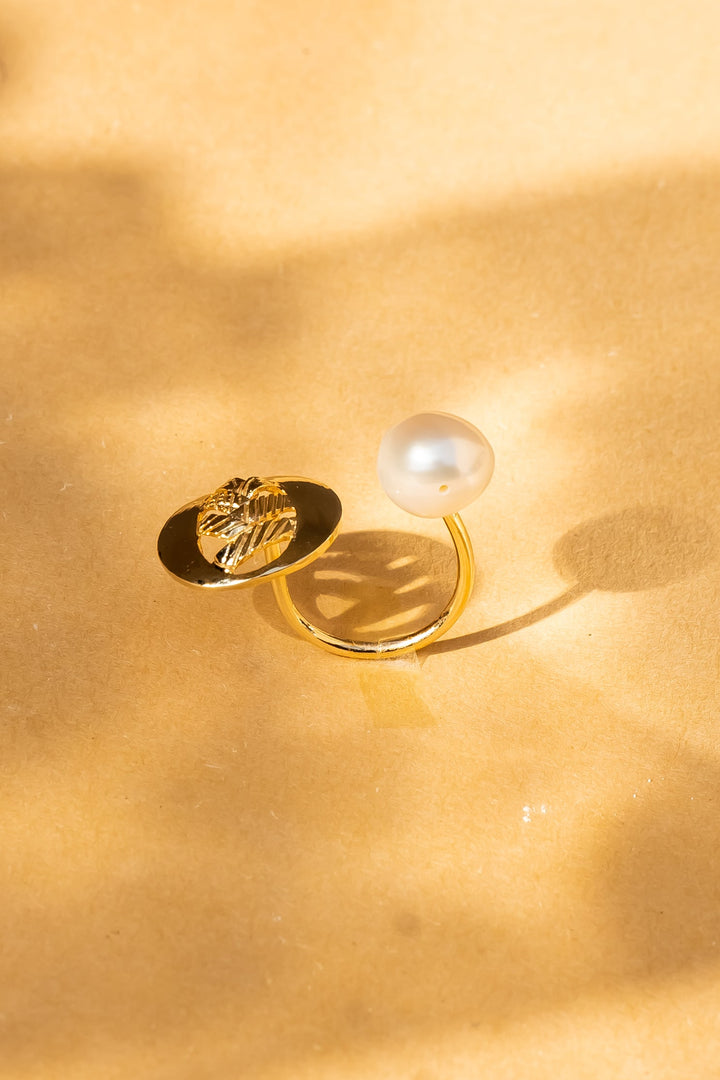 Pair the Weave ring with our matching earrings with a unique plaided texture on the metal that adds beauty to the freshwater coin pearl, making this a perfect combination to add grace to your look.