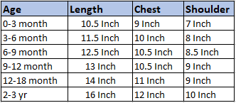 0-3 month, 3-6 month, 6-9 month, 9-12 month, 12-18 month, 2-3 yr |