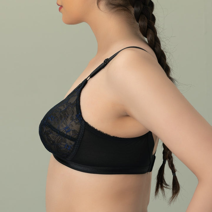 X-Over Trendy, Soft Lace Unpadded Crossover Bra, BLACK
